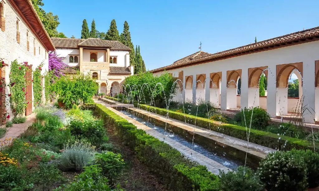 هذه الحدائق الرائعة حيث يستريح سلاطين غرناطة هي أمر لا بد منه للجميع. قصر الحمراء وحدائقه في غرناطة بإسبانيا هي مثال للأناقة والملكية. تمثل هذه الحدائق العربية الجنة المليئة بالبهجة والملذات. تعتبر المياه جزءًا مهمًا من هذه الحديقة مع تواجدوالنوافير والبرك ومصادر المياه.