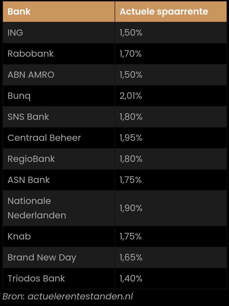فيما يلي معدلات الفائدة التي تقدمها البنوك الهولندية الرئيسية: