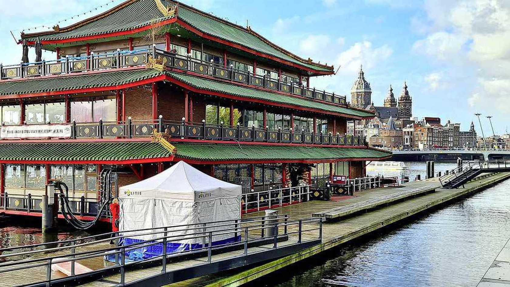 أقامت الشرطة خيمة بيضاء عند رصيف المراكب الصغيرة المؤدية إلى Sea Palace ، وهو مطعم صيني تم بناؤه على الطراز المميز للمعبد ، وبالتالي فهو جزء مبدع من وسط مدينة أمستردام.
