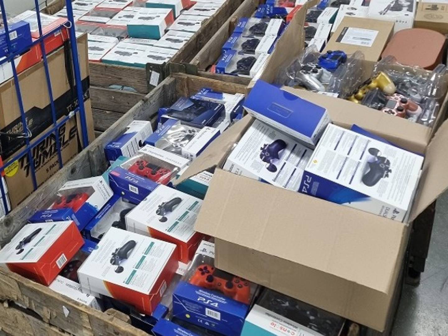 كان هناك المزيد في مستودع في Oosterhout. في المجموع ، تم العثور على ما يقرب من 700 سماعة أذن موسيقية و 500 وحدة تحكم في الألعاب وأكثر من 800 زجاجة عطر.
