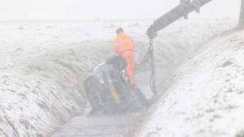 الثلج يتساقط وهذا يجعل الطرق زلقة في كل مكان في تقريباً في هولندا . كان هناك بالفعل العديد من الحوادث.