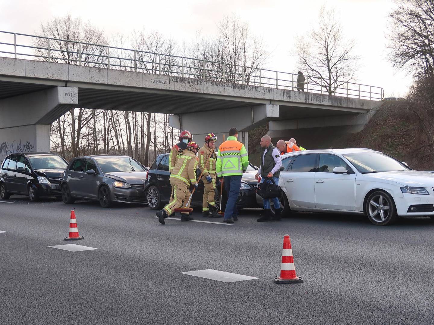 اصطدمت خمس سيارات مع بعضها البعض على الطريق السريع A2 بالقرب من مخرج Leende في برابانت.