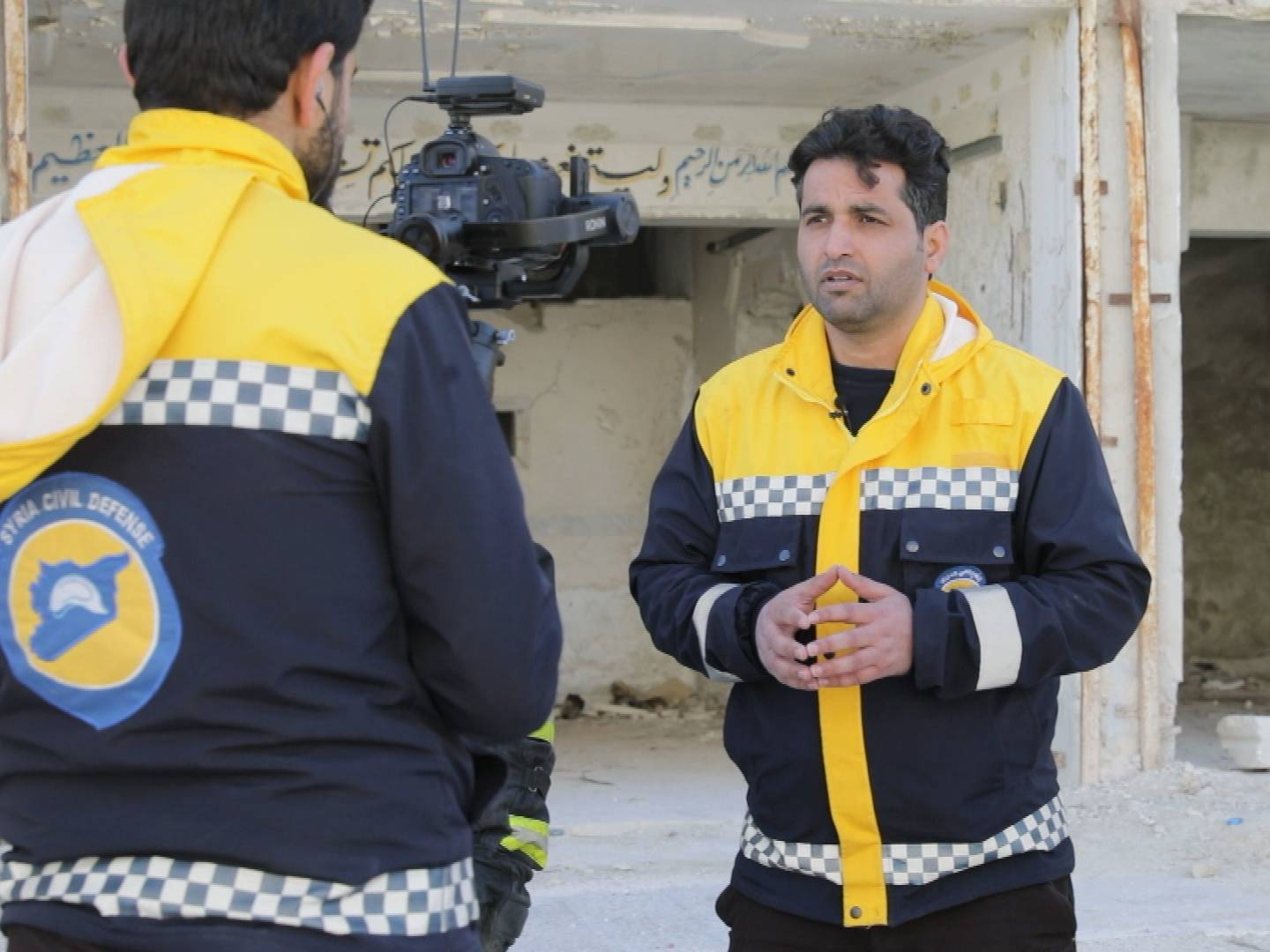 قام فريق محلي في سوريا بتصوير الخوذ البيضاء وهم يصنعون مقاطع فيديو تعليمية للأوكرانيين. تتم مشاركة مقاطع الفيديو مع عمال الإنقاذ الأوكرانيين وعبر وسائل التواصل الاجتماعي.