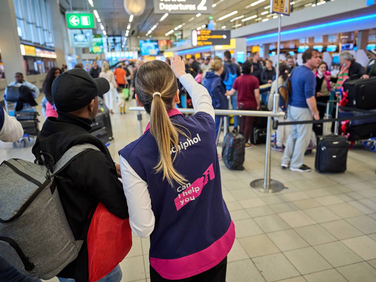 ويرافق المسافرين موظفي سخيبول ، كما تم وضع العديد من الأسوار والأشرطة لضمان سير كل شيء بسلاسة.