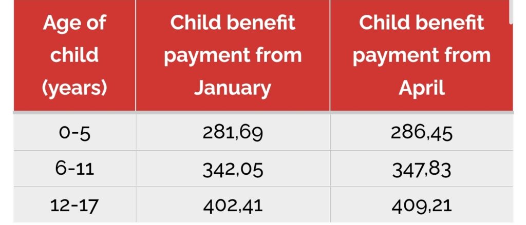 سترتفع النسبة القصوى التي تغطيها الحكومة من 10.25 يورو إلى 10.71 يورو في الساعة. - زيادة إعانة الأطفال: