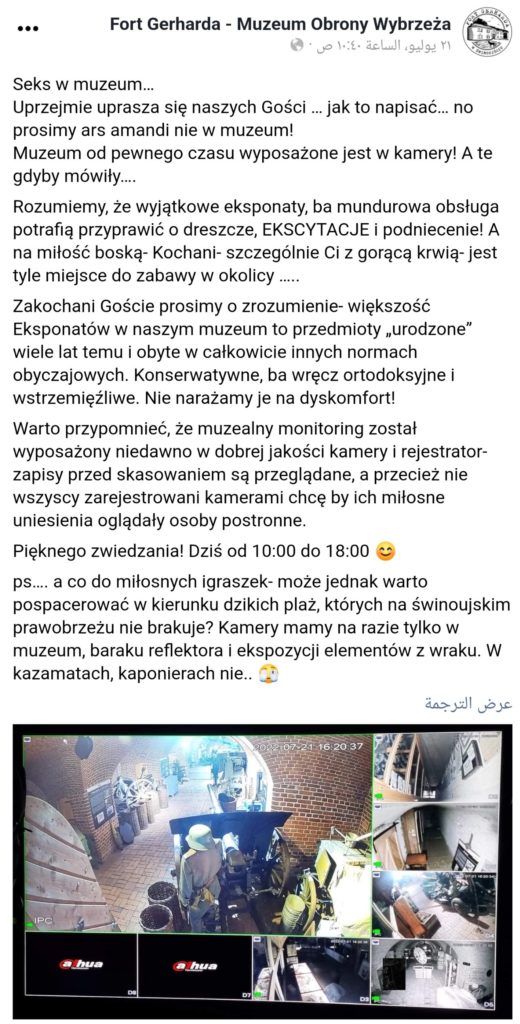 أطلق متحف في بولندا طلبًا مثيرًا للفضول في التواصل مع الزوار. عندما تم القبض على ثلاثة أزواج وتصويرهم بواسطة كاميرات المراقبة وهم يمارسون الجننس داخل المتحف.