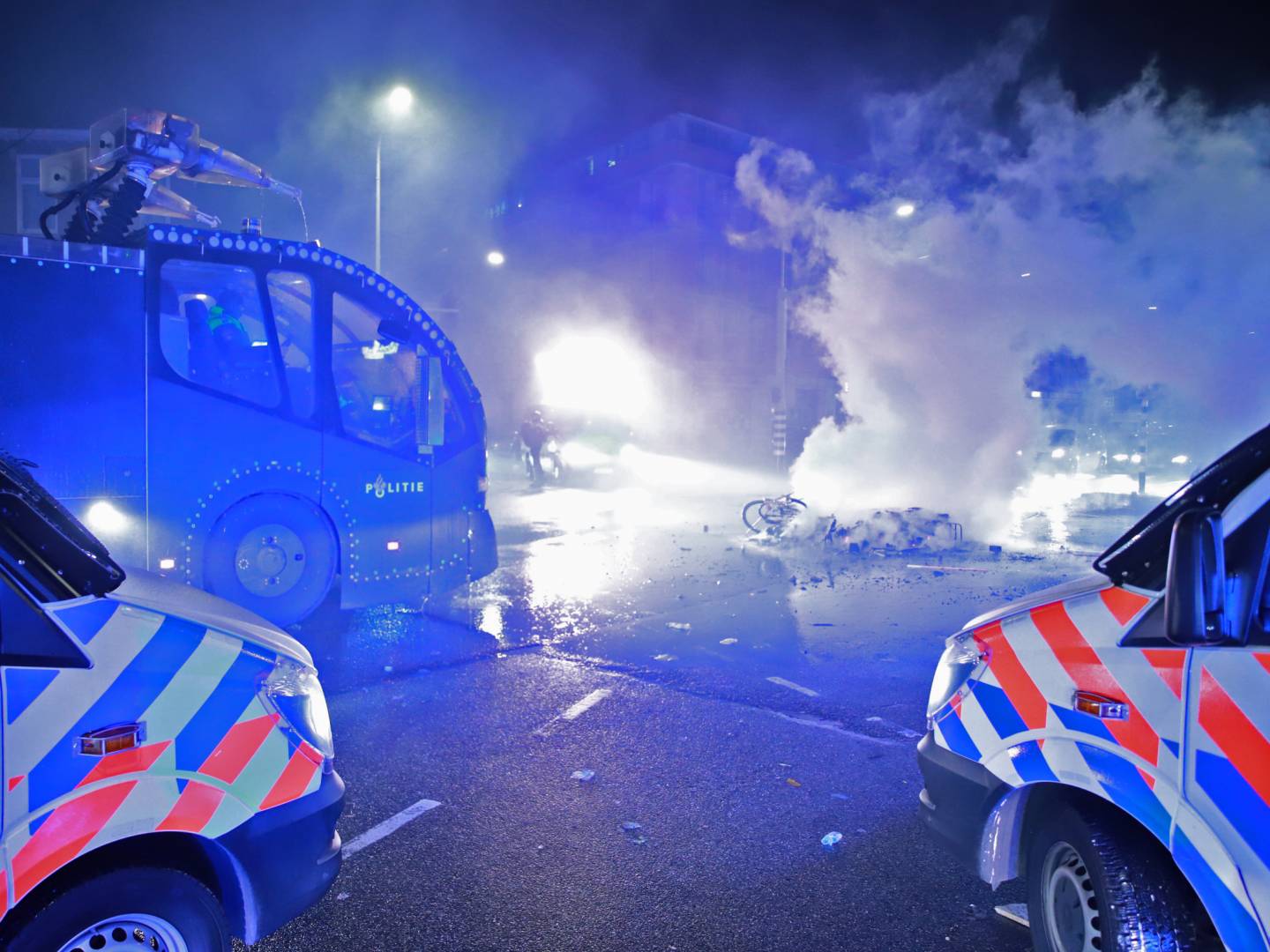 كانت الشرطة متواجدة في العديد من الأماكن كإجراء احترازي ، لأنه كانت هناك بالفعل تقارير عن أعمال شغب وشيكة. كان هذا هو الحال أيضًا في لاهاي. وتقول الشرطة إن الضباط ظهروا في الشارع في وقت مبكر من المساء بسبب النداءات على وسائل التواصل الاجتماعي.