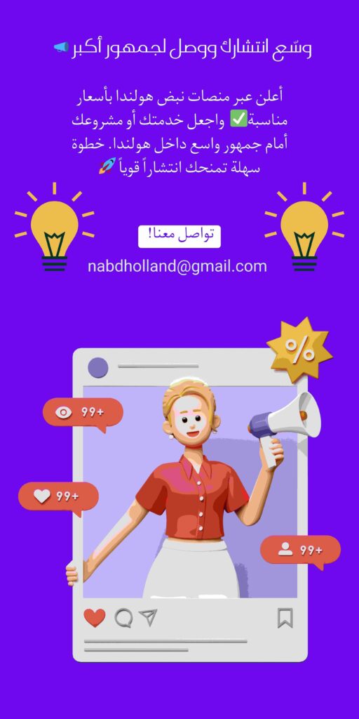 لمعرفة أخبار هولندا لحظة بلحظة يمكنكم متابعتنا على التيلغرام من خلال الضغط هنا ومتابعتنا على الواتس اب من خلال الضغط هنا