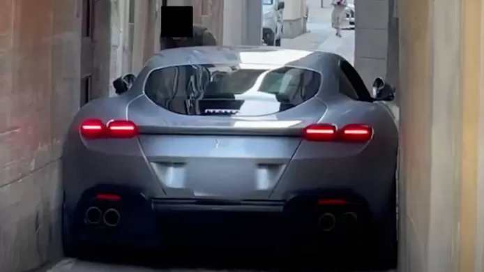 شاهد بالفيديو: سيارة فيراري عالقة في شارع ضيق في بلدة إيطالية