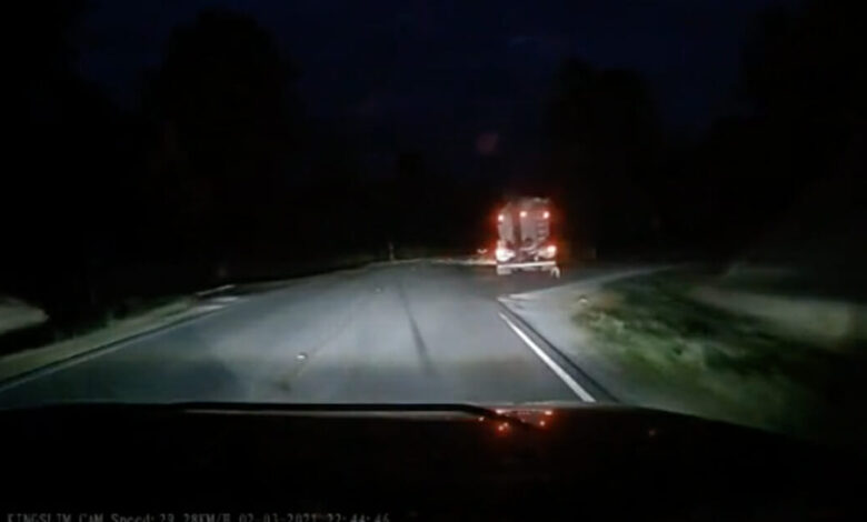 يضغط السائق على الفرامل في منتصف الليل – يتجمد عندما يرى ما يتم إلقاؤه من الشاحنة