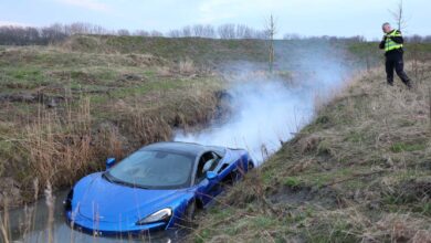 مكلارين باهظة الثمن في الماء في لاهاي “المحرك لا يزال قيد التشغيل”!