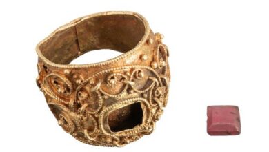 تم العثور على خاتم ذهبي من العصور الوسطى مزين ببذخ في درينثي ، مع الحجر الكريم الذي كان لا يزال…