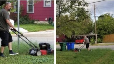 تمت مشاركة صورة هذا الأب وهو يقص العشب لزوجته السابقة أكثر من 160 ألف مرة على وسائل التواصل الاجتماعي. لكن…