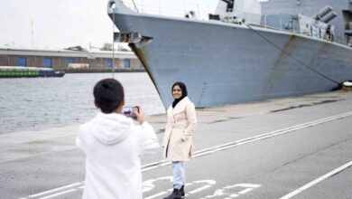 سفينة حربية كبيرة بجانب سفينة اللاجئين في أمستردام ” خيار مؤسف للغاية مع توجيه المدفع خصوصاً”
