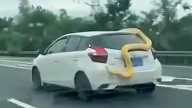 رعب على الطريق السريع: ثعبان عملاق يزحف فوق سيارة متحركة في الصين